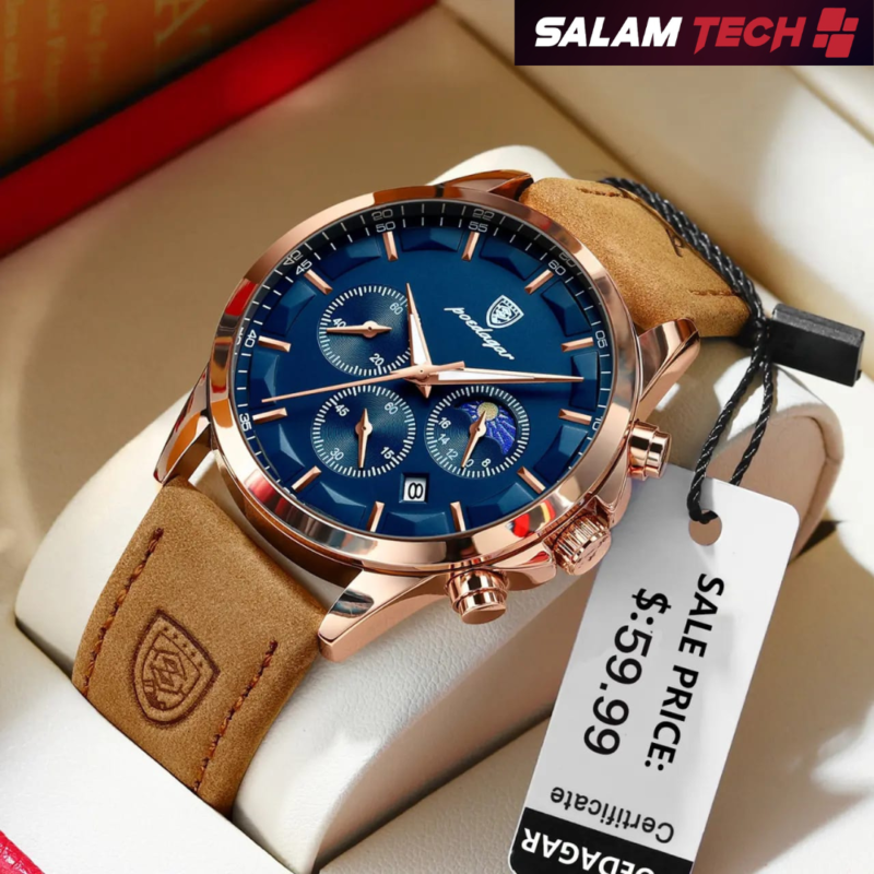 ✔️ "100% Authentique" (POEDAGAR™ Cuir) ✔️ Style : Décontracté & Élégante ✔️ Fonctions : Calendrier & Chronographe intégré ✔️ Cadran : Verre Hardlex – Solidité et résistance accrues ✔️ Étanchéité : Résistante à l’eau (3ATM) ✔️ Durabilité : Résistante aux chocs et aux rayures ✔️ Bracelet en cuir véritable✅ Fourni avec le coffret d'origine ✅ Jusqu'à 6 mois Garantie 💪